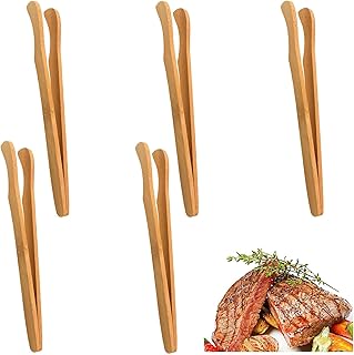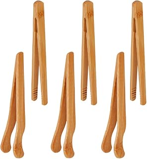 JZK 6 X Petites Pinces Alimentaires en Bambou Pince à Pain en Bois Pince Grille-Pain Pinces de Cuisine Pince à Thé Cornichons Pinces Pince à Bacon, Pinces de Cuisson