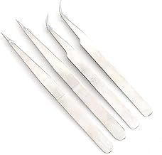 Pince Brucelle, 4 pièces Brucelles pinces brucelles pinces surjeteuses pince courbée avec embouts dentelés pince courbées et dentées Embout de pince droite Brucelles antistatiques incurvées