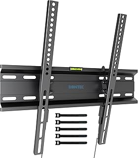 BONTEC Support TV Mural Fixe Inclinable Ultra Mince pour des Téléviseurs Plats & incurvés LCD LED OLED 3D Plasma de 23 à 55 Pouces avec Capacité Max de 45 kg VESA 400x400 mm