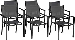 Happy Garden Lot de 6 chaises en Aluminium Anthracite - textilène Gris