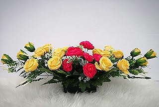 roselynexpress Composition De Fleurs Artificielles Lesté Ciment pour Une Parfaite Tenue à L' extérieur. Réalisé par Nos Soins, Fleurs de Qualité. Dimension - Largeur/32cm - Longueur/74cm.