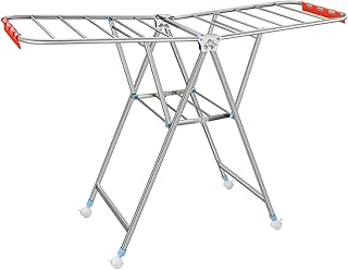 YOOKEA Sèche-Linge sur Pied avec 4 Roues, Sèche-Linge en Acier Inoxydable, Sèche-Linge Coulissant pour Chaussettes, Vêtements, Poids de Rangement 40 kg, 140x45,5x94 cm, Argent