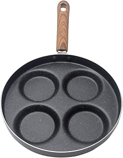 NALCY Poêle à Omelette, Poêle à Crêpes 4 Trous 24 Cm, Poêle à Omelette Ronde Antiadhésive, Poêle à Frire, Poêle à Déjeuner (Noir)