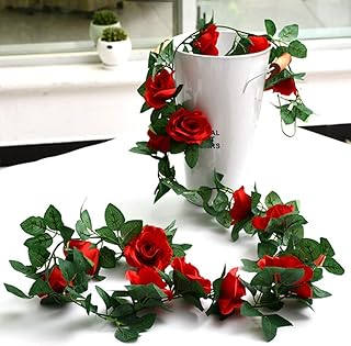 Rose Fleurs Artificielles Rouges Lierre Faux Plantes Guirlandes de roses artificielles de mariage Fleurs artificielles suspendues Faux guirlandes de fleurs Party Garden Crafts Art Wedding Decor
