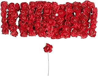 Lot de 144 petites roses artificielles en papier - Fleurs décoratives avec tige en fil de fer - Diamètre : env. 1 cm - Roses artificielles - Pour travaux manuels - Rouge