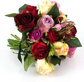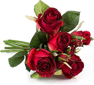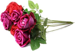 Krelymics Bouquet de roses artificielles Rouge 10 fleurs artificielles Bouquet de fleurs artificielles pour la maison, le jardin