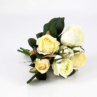 artplants.de Bouquet de Roses artificielles Mini-Molly, 5 Roses, 3 Boutons, Blanc, 25cm, Ø 15cm - Bouquet de Fleurs en Tissu