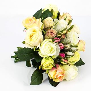 artplants.de Grand Bouquet de Roses artificielles Molly, 15 Roses, 9 Boutons, crème-Abricot, 28cm, Ø 25cm - Fleurs artificielles - Bouquet Artificiel