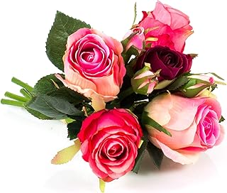artplants.de Bouquet de Roses artificielles Mini-Molly, 5 Roses, 3 Boutons, Rose Fuchsia, 25cm, Ø 15cm - Bouquet de Fleurs en Tissu