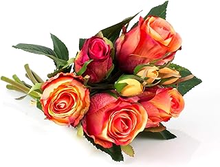 artplants.de Bouquet de Roses artificielles Mini-Molly, 5 Roses, 3 Boutons, Rose-Orange, 25cm, Ø 15cm - Bouquet de Fleurs en Tissu