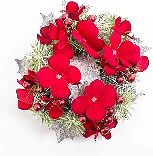artplants.de Anneau pour Bougie avec Fleurs de Roses et d'hortensia, Rouge, Ø 10cm - Fleurs artificielles - Déco de Table