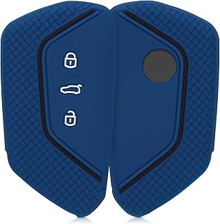 kwmobile Accessoire Clé de Voiture Compatible avec VW Golf 8 3-Bouton - Coque de Protection Souple en Silicone - Bleu foncé-Noir