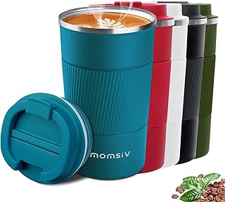 MOMSIV Tasse de café isolée, Tasse à café Isotherme à Double paroi,Mug de Voyage avec Couvercle Rabattable Tasse a Café ou The,Bouteille d'eau Isotherme Acier Inoxydable,Bleu