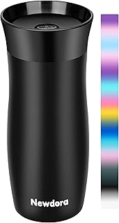 Newdora Modern 380ML Classic Thermos Cafe Isotherme,Tasse à Cafe de 13OZ en Acier Inoxydable,Mug Thermos avec Couvercle sans BPA du Lait,Jus de Fruits, Bière pour Cadeau (Noir)