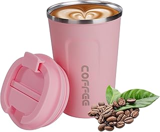 Tasse à Café en Acier Inoxydable, 380ml Mug de Voyage Tasse de Voiture étanche avec Couvercle, Tasse de Café Isolée à Double Paroi sous Vide pour au thé et à L'eau (Rose)