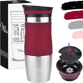 Milu Mug Isotherme Etanche 370ml, 450ml I Thermos Café-Thé I Tasse isolée pour café et thé à emporter, Double Paroi Isolée sous Vide, Acier Inoxydable I Tasse de voyage Chaud & froid (370ml, Rouge)