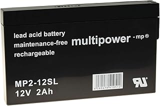 Powery Batterie au Plomb (multipower) MP2-12SL Compatible avec YUASA NP2-12, 12V, Lead-Acid [ Batterie au Plomb ]