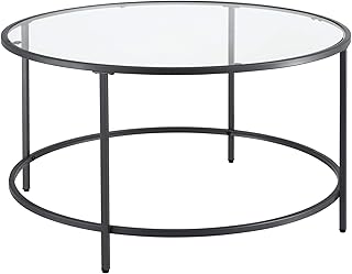 Table Basse Ronde pour Salon Petite Table Stylée Plateau en Verre Pieds en Acier 84 x 45,5 cm Noir
