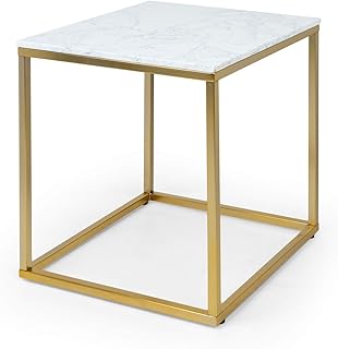 Besoa White Pearl I Table Basse, Table d'appoint, Dimensions : 50 x 50 x 50 cm (lxHxP), Plateau : marbre Blanc, Cadre : métal, Couleur : Or/Blanc