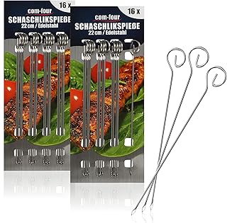COM-FOUR® brochettes de brochettes 16x en acier inoxydable - brochettes de viande de 30 cm de long - brochettes de légumes haut de gamme dans un ensemble (30cm - 16 pièces)