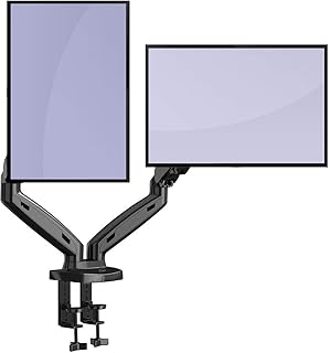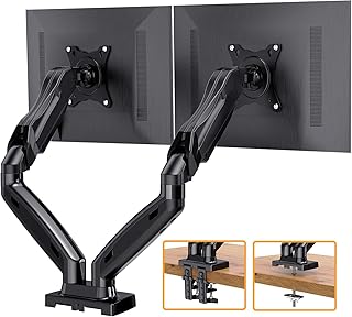 Amazon Brand -Eono Support de Fixation de Bureau pour écran de PC, avec Doubles Bras à Ressort à gaz réglable, pour écrans de 27 Pouces (81 cm) Maximum à Fixations VESA 75 x 75 ou 100 x 100 mm, PL04