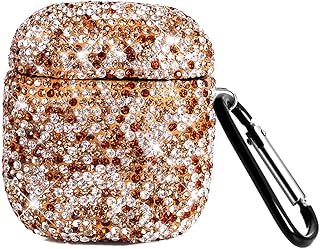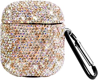 Coque AirPods 1,Coque AirPods 2,avec mousqueton Bling brillant Diamant Ultra Mince Filles Femmes Crystal Dur PC étanche poussière Protection Skin Slim Case Housse Etui Coque pour AirPods 1&2,Or mixte