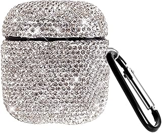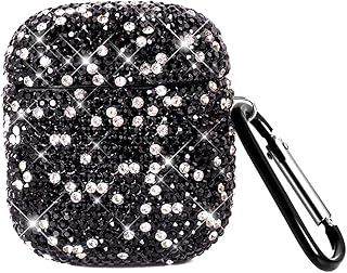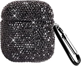 Coque AirPods 1,Coque AirPods 2,avec mousqueton Bling brillant Diamant Filles Femmes Crystal Dur PC étanche poussière Protection Skin Slim Case Housse Etui Coque pour AirPods 1&2,Noir mixte