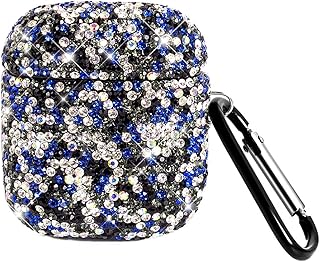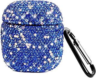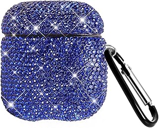 Coque AirPods 1,Coque AirPods 2,avec mousqueton Bling brillant Diamant Filles Femmes Crystal Dur PC étanche poussière Protection Skin Slim Case Housse Etui Coque pour AirPods 1&2,Bleu foncé