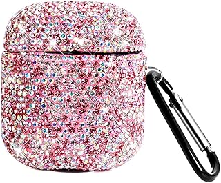 Coque AirPods 1,Coque AirPods 2,avec mousqueton Bling brillant Diamant Filles Femmes Dur PC étanche poussière Protection Skin Slim Case Housse Etui Coque pour AirPods 1&2,Rose + Plus de couleurs