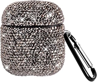 Coque AirPods 1,Coque AirPods 2,avec mousqueton Bling brillant Diamant Filles Femmes Crystal Dur PC étanche poussière Protection Skin Slim Case Housse Etui Coque pour AirPods 1&2,Noir clair