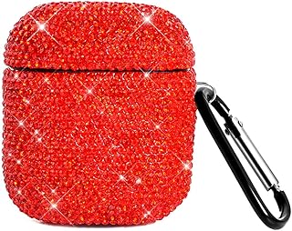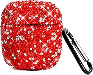Coque AirPods 1,Coque AirPods 2,avec mousqueton Bling brillant Diamant Filles Femmes Crystal Dur PC étanche poussière Protection Skin Slim Case Housse Etui Coque pour AirPods 1&2,Multicolore rouge +