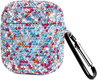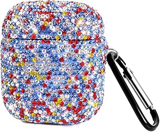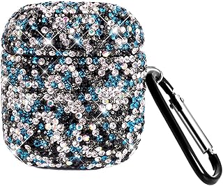 Coque AirPods 1,Coque AirPods 2,avec mousqueton Bling brillant Diamant Filles Femmes Crystal Dur PC étanche poussière Protection Skin Slim Case Housse Etui Coque pour AirPods 1&2,Multicolore bleu +