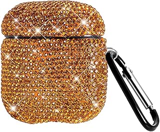 Coque AirPods 1,Coque AirPods 2,avec mousqueton Bling brillant Diamant Filles Femmes Crystal Dur PC étanche poussière Protection Skin Slim Case Housse Etui Coque pour AirPods 1&2,Jaune mélangé