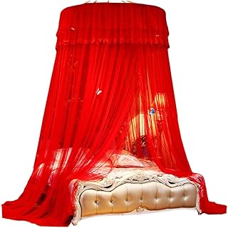 Kaiyei Filet Moustiquaire Universal Moustiquaire a Suspendre Dentelle pour Lit Double, Simple, Princesse Dome avec Crochet Adhésif Décoration Papillon Chambre Romantique Palais Rouge 200cm ×220cm