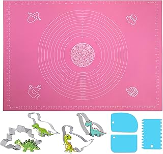 Gyvazla Tapis de Cuisson Silicone, 60x40cm Réutilisable Anti-Adhérent Tapis à Pâtisserie, Inclure 4pcs Emporte-Pièces, 3pcs Grattoir, Tapis de Cuisson, pour Gâteau, Macaron, Biscuit, Pâte, Pizza
