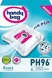 Melitta Handy Bag - PH96 - 4 Sacs Aspirateurs, pour Aspirateurs Philips, AEG, Electrolux, Volta et Tornado, Fermeture Hermétique, Filtre Anti-Allergène, Filtre Moteur