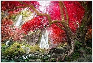 Startonight Impression sur Verre Acrylique Tableau - Chute d'eau dans la Forêt Rouge - Moderne Image en Verre 60 x 90 cm